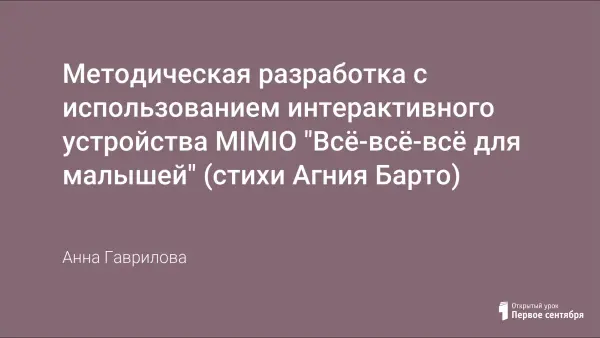 Разработка направлена на формирование интереса к художественному слову (стихи А.Барто), развитие способности самостоятельного мышления, представлений об окружающей действительности. Развивать умение воспроизводить звуковой образ слов, запомнить и использовать в речи стихотворные рифмы, выразительность речи. Регламентированная совместная деятельность с детьми интегрируется с ОО «Познание», «Коммуникация», «Социализация», «РМП».