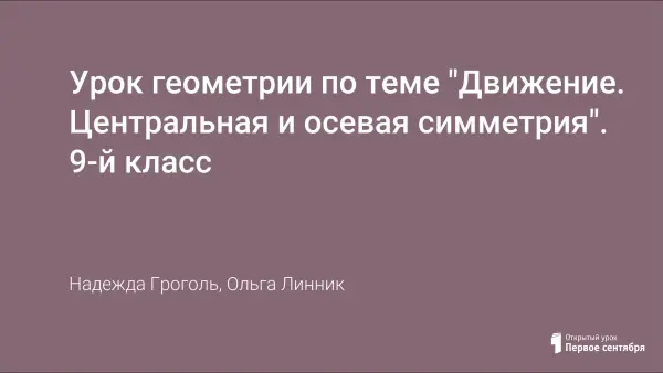 Урок геометрии по теме "Движение. Центральная и осевая симметрия". 9-й класс