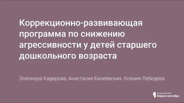 Коррекционно-развивающая программа по снижению агрессивности у детей старшего дошкольного возраста
