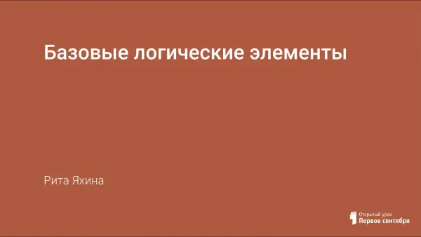 На уроке учащиеся знакомятся с базовыми логическими элементами, вырабатывают навыки построения таблиц истинности логических схем и функций. Цель урока: сформировать у учащихся представление о базовых логических элементах, логических схемах и применении полученных знаний при решении практических задач. Презентацию можно использовать при объяснении нового материала, составлении опорных конспектов, для повторения, самостоятельной и индивидуальной работы.