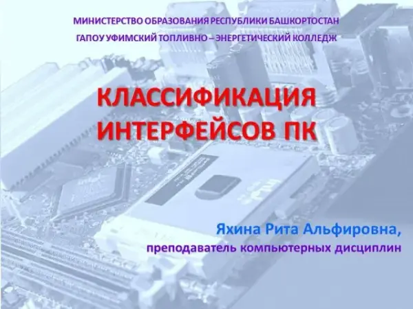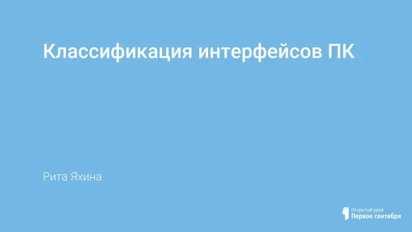 На уроке обучающиеся знакомятся с интерфейсами компьютера, рассматривают классификацию интерфейсов. Цель урока: сформировать у обучающихся представление об интерфейсах компьютера и применении полученных знаний при решении практических задач.