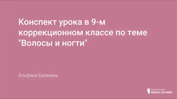 Цель урока: познакомить учащихся со строением волоса и ногтя, особенностями ухода за волосами и ногтями.