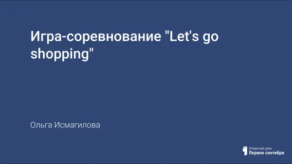 Игра-соревнование "Let's go shopping!" для учащихся 6-го класса стимулирует познавательную деятельность учащихся, активизирует изученную лексику и речевые образцы по теме "Shopping". Эту игру можно использовать на уроке повторения или в качестве внеклассного мероприятия. Игровая форма обучения на уроках - это возможность для эффективного сотрудничества педагога и учеников.