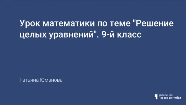 Урок посвящен решению целых уравнений в 9-м классе. На уроке необходимо изучить и систематизировать знания учащихся о рациональных способах решения целых уравнений, необходимых для итоговой государственной аттестации учащихся. Учащимся дается возможность развивать умение применять полученные знания на практике: умение делать выводы; умение работать в должном темпе; умение осуществлять самоконтроль.
