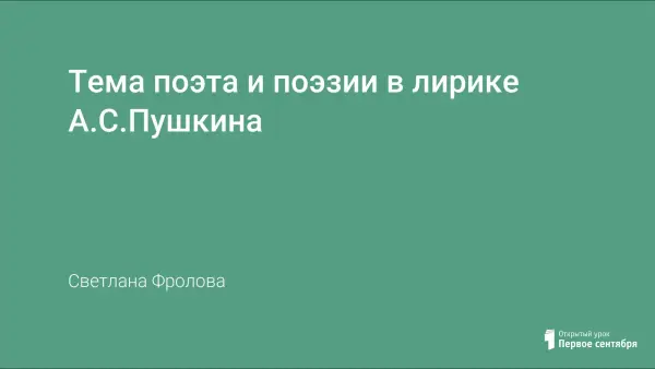 Цели урока: показать эволюцию темы поэта и поэзии в лирике А.С.Пушкина; развивать навыки анализа лирического стихотворения, умение делать обобщающие выводы; развивать навык владения культурными нормами и традициями русской речи; воспитывать читательскую культуру школьников.