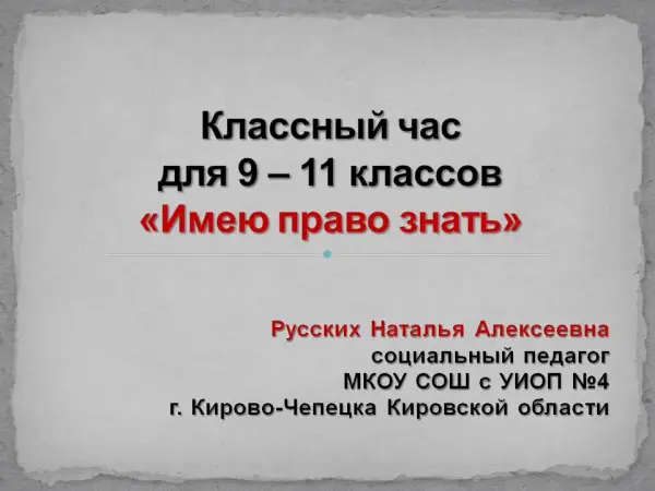 Классный час "Имею право знать". 9‒11-й класс