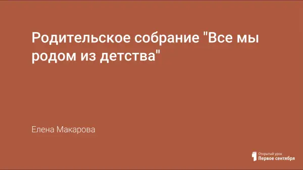 Собрание предполагается провести в форме мастерской общения (пригласить стоит обоих родителей из каждой семьи, а не одного), оно рассчитано на их активное участие. Все собрание звучит музыка, которая помогает усилить ассоциации и воздействует на эмоциональное состояние родителей.