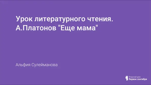 На уроке литературного чтения по рассказу А. Платонова «Ещё мама» учащиеся попробуют ответить на вопрос: «Что значит ещё мама?».