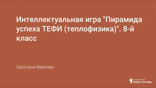 Игру можно проводить по окончании изучения раздела физики 8-го класса «Тепловые явления». Цель игры: обобщить и систематизировать знания по предмету, сформировать системно-информационный подход к анализу окружающего мира; повторить пройденный материал и раскрыть способности учащихся в усвоении материала сверх школьной программы; воспитать устойчивый интерес к изучаемому предмету.