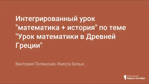 Интегрированный урок математики и истории обобщает знания по темам «Наука и образование в Древней Греции» и «Арифметические действия с десятичными дробями». Урок развивает логическое мышление и творческий подходк решению задач, познавательный интерес к предметам, стремление к самообразованию и самосовершенствованию. Обращается внимание учащихся на жизнь Пифагора – яркий пример служения не только науке, но и заботы о нравственном здоровье общества.
