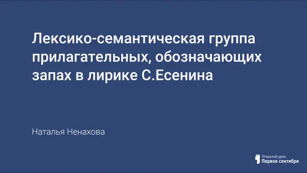 Исследовательская работа посвящена решению актуальной задачи – описанию особенностей пласта русской лексики, объединенной в лексико-семантическую группу прилагательных, обозначающих запах. Актуальна проблема функционирования единиц ЛСГ в художественном призведении.