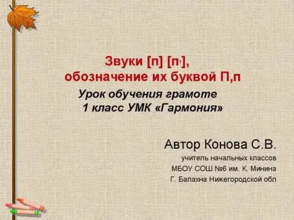 Открытый урок по теме "Звуки [п], [п'], обозначение их буквой П, п". 1-й класс