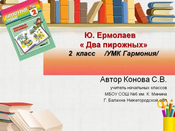 Открытый урок чтения «Ю.Ермолаев "Два пирожных"». 2-й класс