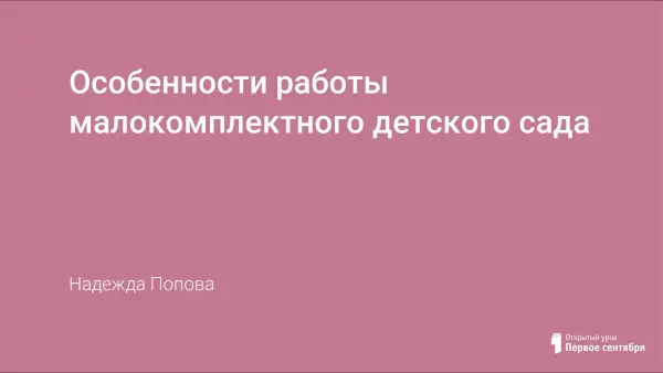 Общественное дошкольное воспитание в селе в основном представлено малокомплектными детскими садами с разновозрастным комплектованием групп. Сложность работы в малокомплектном саду зависит от количества разновозрастных групп: чем меньше групп, тем больше проблем. В связи с этим самым сложным комплектованием следует считать одногрупповые малокомплектные детские сады. Причем тяготение к одногрупповым садам не прихоть села, а социальная демографическая особенность.