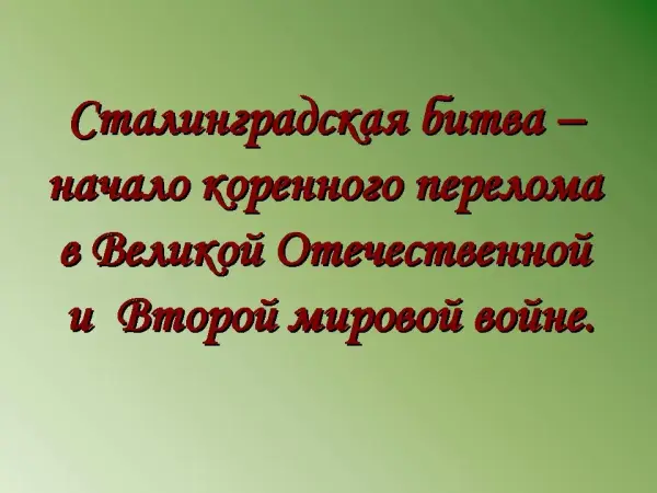 Интегрированный урок истории, математики и литературы посвящен 70-летию со дня победы в Сталинградской битве. На уроке рассмотрен общий ход Сталинградской битвы, решены текстовые задачи, связанные с историческими фактами битвы на Волге, обучающиеся знакомятся с произведениями писателей-участников Сталинградской битвы.