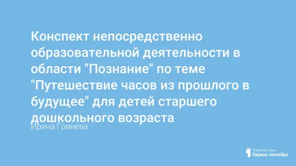 В ходе занятия дети узнают об истории часов, учатся устанавливать связь между видами часов и особенностями использования часов человеком.