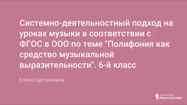 Урок в 6-м классе призван вывести детей на проблему урока и обозначить ее в словесной формулировке. Проблемная ситуация создается через поиск незнакомого в знакомом. Все задания связаны с целью урока и направлены на конструирование понятия «полифония».