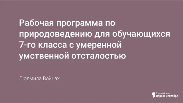 Программа адресована обучающимся 7-го класса (классы с нарушениями интеллектуального развития (тяжёлая и глубокая умственная отсталость). Цель программы: изучение элементарных сведений, доступных обучающимся с умеренной умственной отсталостью о об основных элементах неживой природы, формирование у обучающихся целостной научной картины природного и социокультурного мира, отношений человека с природой.