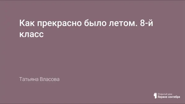Заключительный урок в 8-м классе по теме «Как прекрасно было летом» направлен на совершенствование знаний, умений и навыков учащихся, обобщение лексических и грамматических умений и навыков разговорной речи на основе монологических и диалогических высказываний. Повышение эффективности урока достигается через использование компьютерных технологий как средства практики и инструмента тестирования учащихся, контроля знаний, умений и навыков говорения и аудирования.