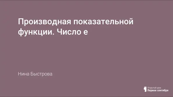 В ходе урока учащиеся повторяют определение производной, правила дифференцирования, свойства производной элементарных функций, вспоминают график и свойства показательной функции, учатся находить производную показательной функции, осуществить контроль знаний с помощью проверочного задания и теста.