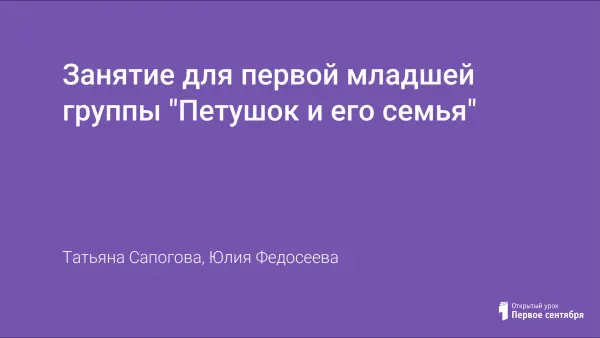 Занятия в первой младшей группе учит детей правильно называть домашнюю птицу – петуха, курицу, цыплят; учит выполнять упражнения на звукоподражание; развивает мелкую и общую моторику; приучает слушать музыку танцевального характера и эмоционально реагировать на нее, двигаться в соответствии с характером музыки; формирует умение работать в коллективе; продолжает знакомить со свойствами сыпучих предметов, со свойствами воды; развивает заботливое отношение к животным, птицам, живой природе.
