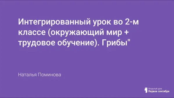 Урок носит интегрированный характер и включает в себя теоретическую часть, относящуюся к предмету "Окружающий мир", и практическую, относящуюся к "Художественному творчеству". Работа может проводиться в любом классе начальной школы в осенний период. Различие лишь в сложности практической работы и глубине подачи теоретического материала. Урок способствует развитию творческих способностей учеников, воспитывает любовь к родной природе, преподнося базовые знания по теме "Грибы".