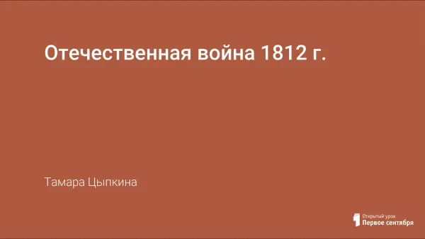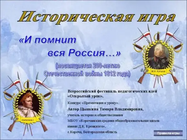 Урок по теме «Отечественная война 1812 года» проводится в форме игры с презентацией.