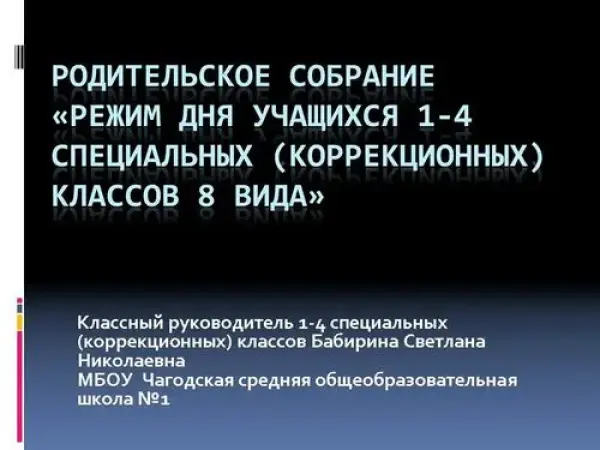 Цель родительского собрания: пополнять запас знаний родителей о режиме дня ученика, формировать у ребенка бережное отношение к здоровью.