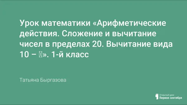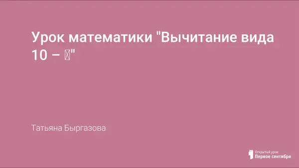 Представлен урок математики в 1-м классе по теме "Вычитание вида 10 – □".