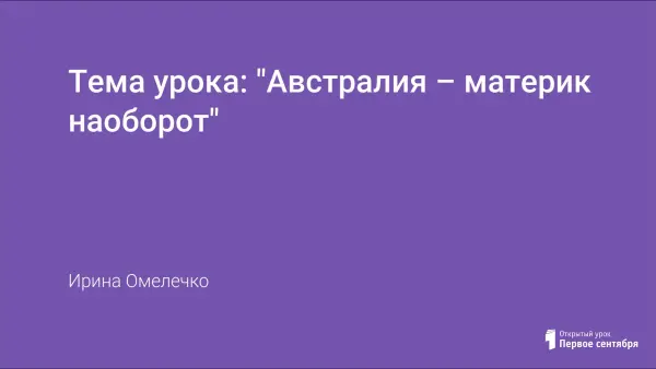 Цель урока: формировать у учащихся представления о физико-географическом положении Австралии, познакомить с историей исследования материка, образовании рельефа и полезных ископаемых, климата, внутренних вод, природных зон и населения.