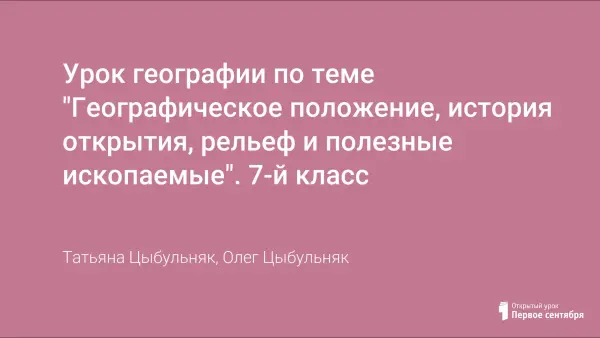 Урок географии по теме "Географическое положение, история открытия, рельеф и полезные ископаемые". 7-й класс