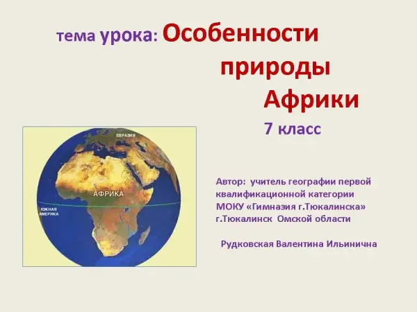 Урок в 7-м классе призван, основываясь на базовых знаниях, познакомить учащихся с уникальными географическими особенностями природы материка Африка, формировать умения работать с различными источниками географической информации, анализировать, обобщать, делать выводы.