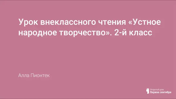 Фольклор изучается на уроках литературного чтения в начальной школе. Этот раздел очень важен для формирования отношения к родине, ее истории и традициям. Урок обобщает знания по теме «Устное народное творчество», развивает самостоятельное творческое мышление, речь, эмоциональный мир ребенка, расширяет кругозор.