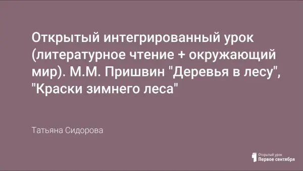 На уроке дети знакомятся с произведением М.М. Пришвина «Деревья в лесу», наблюдают за зимним убранством леса, жизнью зверей зимой и по материалам урока составляют рассказ – мини-сочинение «Краски зимнего леса».