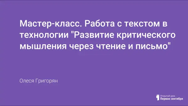 Одной из ведущих технологий для развития критического мышления является "Технология развития критического мышления через чтение и письмо". На примере мастер-класса автор статьи показывает наиболее эффективные методы преподавания в начальной школе.