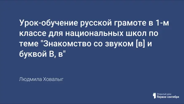 Цели урока: формирование умений и навыков выделения из слов звонкого твердого согласного звука [в] и произношения этого звука, формирование умений и навыков соотнесения звука [в] и буквы в, формирование умений и навыков слияния при чтении звука [в] с гласными звуками в слог, развитие слогового чтения и чтения целыми словами; активизация в речи и предложениях глаголов прошедшего времени, согласование местоимений с существительными, расширение лексики по теме «Домашние животные, работа во дворе».