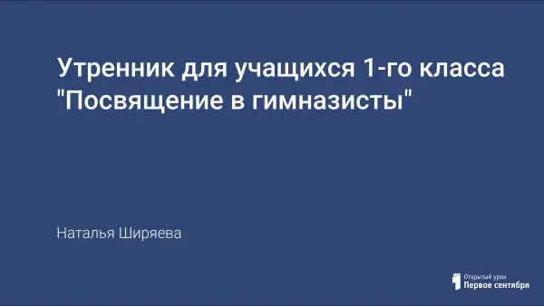 Мероприятие предназначено для учеников 1-го класса. На утреннике учащиеся преодолевают препятствия с помощью своих знаний, читают стихи , встречаются с героями сказок, дают клятву гимназиста.
