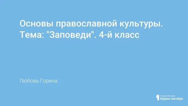 Урок знакомит четвероклассников с заповедями, которые записаны в Библии и даны людям от Бога. Заповеди помогают людям различать добро и зло, показывают нам границы, которые мы не должны переступать, если не хотим навредить другим людям и самим себе, как выполнение или нарушение заповедей влияет на внутренний мир человека.