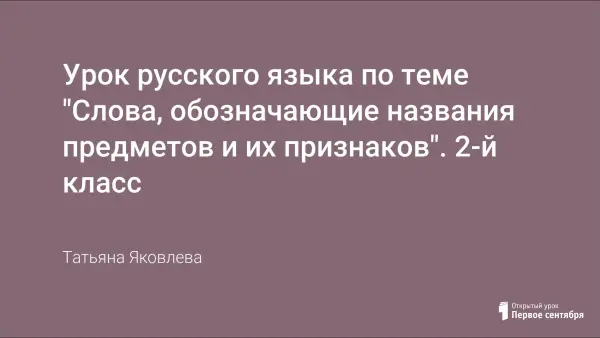 Последний урок по теме «Слова, обозначающие названия предметов и их признаков». На этом уроке объединяющим звеном является тема осени. Есть межпредметная связь с уроками окружающего мира и музыки. Большое внимание уделяется работе с загадками, пословицами и поговорками для расширения словарного запаса младших школьников.