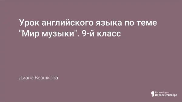 Класс, в котором проведён урок, изучает английский язык 9-й год и отличается высокой мотивацией и способностями. Урок был проведен в рамках ФГОС с применением компетентностного подхода и направлен на совершенствование навыков устной речи учащихся по теме «Музыка», закрепление ранее изученного лексического материалы, умение использовать его в ситуации общения, в логических рассуждениях и дискуссиях. Урок отличает практическая направленность, т.к. он связан с личным жизненным опытом обучающихся.