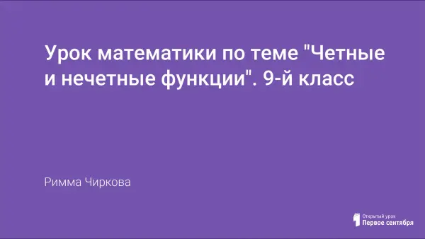 Цели урока: повторить ранее изученный материал; закрепить навыки исследования функции на чётность; отрабатывать навыки построения графиков четной и нечётной функции; развивать общеучебные умения и навыки.