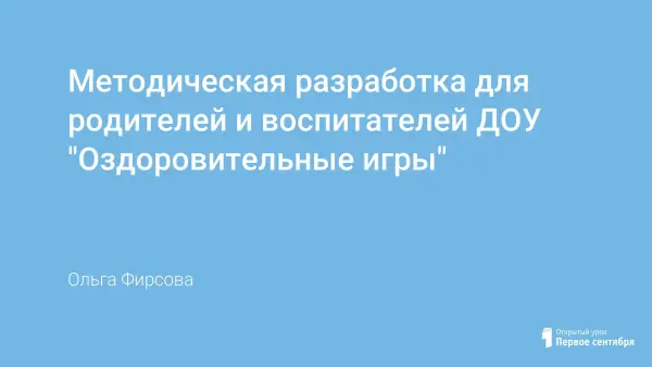 Методическая разработка для родителей и воспитателей ДОУ "Оздоровительные игры"