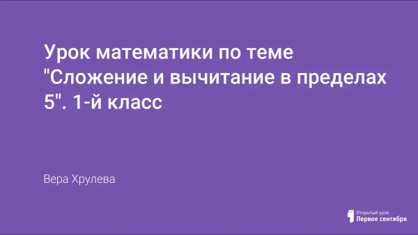 На уроке дети изучают число 5. Создается проблемная ситуация, демонстрирующая учащимся необходимость изучения числа 5 и цифры 5. Урок включает каждого ребенка в учебно-познавательную деятельность, развивает вычислительные навыки, мышление, умение анализировать, обобщать, рассуждать по аналогии. На завершающем этапе ученики выполняют диагностическую работу.