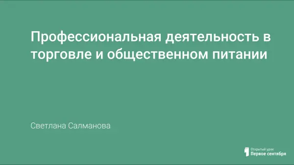 Цел урока: формирование знаний о профессиональной деятельности в торговле и общественном питании.