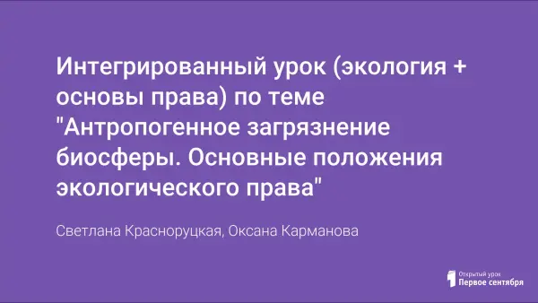 Интегрированный урок (экология + основы права) по теме "Антропогенное загрязнение биосферы. Основные положения экологического права"