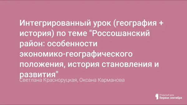 Интегрированный урок (география + история) посвящен изучению истории "малой Родины" - Россошанскому району Воронежской области. На уроке развивается интерес к истории и географии родного края; прививаются чувства патриотизма, любви к своей Родине, родному краю.