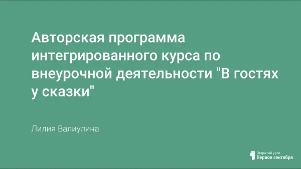 Цель программы кружка «В гостях у сказки» - нравственное, патриотическое и эстетическое воспитание, развитие у учащихся эстетического восприятия, воображения, внимания, мышления, способствующих успешному формированию гармоничной личности младшего школьника.