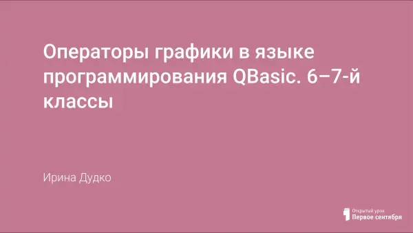 Программа по информатике для летней математической школы. 6–7-е классы, 9 часов. Работая с компьютерной графикой на любом языке программирования высокого уровня, поддерживающем построение графических примитивов, обучаемые прочнее усваивают базовые понятия программирования, легко приобщаются к алгоритмической культуре и компьютерной грамотности.