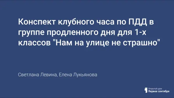 Конспект клубного часа по ПДД в группе продленного дня для 1-х классов "Нам на улице не страшно"