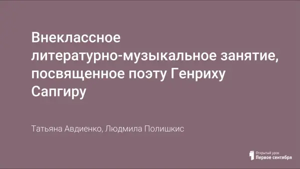 Литературно-музыкальная композиция посвящается творчеству детского поэта, прозаика и переводчика Генриха Сапгира.